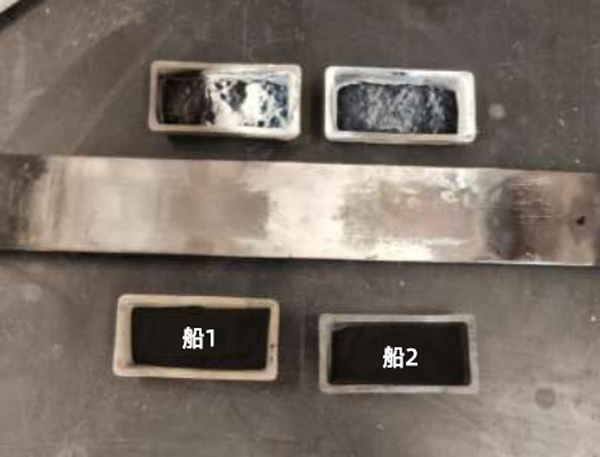 氣體從右向左流動,材料最常沉積在圖像中的船1上。這說明材料從船1運送到船2并與樣品表面的碳發生反應。一旦樣品表面被碳化硅擠滿,碳化硅就不能再與碳反應,而是將碳化硅吹出爐外。