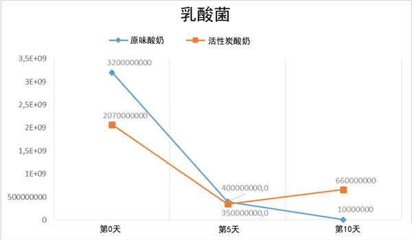 經(jīng)測(cè)定,在含有活性炭的酸奶和原味酸奶樣品的第0天、第5天和第10天,沒有菌群和總酵母霉菌(PDA)生長。測(cè)定了總?cè)樗峋?圖3)。