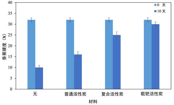 圖2:活性炭材料對(duì)香蕉貯藏10天后硬度變化的影響。