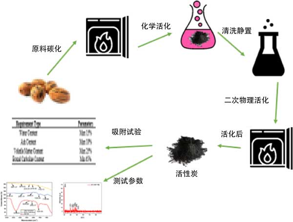 果殼用作生產活性炭的原料。在果殼廢料的合成過程中,第一步是將殼在陽光下干燥3小時。然后將干燥的果殼在350℃的溫度下碳化2小時。隨后使用研缽將碳化的果殼研磨成粉末,然后過100目篩。樣品制備首先稱量肉豆蔻殼粉末和預定的1M-HCl溶液。接下來,用1M-HCl溶液將粉末活化24小時。活化后,活性炭過濾并用蒸餾水洗滌,直至pH值變為中性。一旦pH值為中性,活性炭就會在110℃的溫度下煅燒1小時。煅燒后,來自肉豆蔻殼的碳在惰性氣體氣氛(氮氣)中在600℃、650℃和700℃的溫度下退火2小時。然后用蒸餾水洗滌所得結果以除去金屬化合物。氨(NH3)水平降低最多的樣品將根據下面的圖1進行表征。