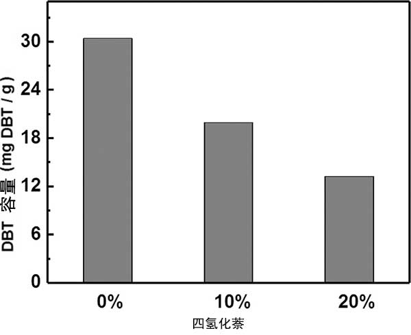 圖4.在具有不同質(zhì)量分?jǐn)?shù)的四氫化萘存在下活性炭對DBT的吸附容量。