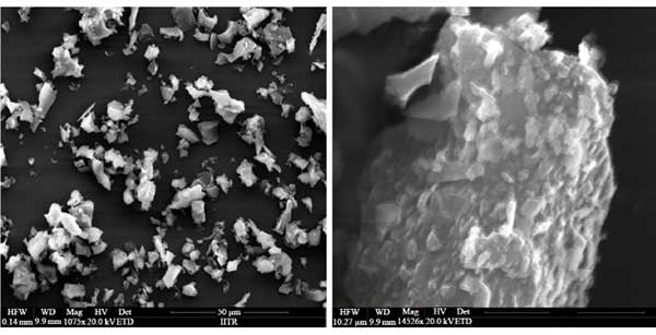 SEM分析:圖1中所示的合成的活性炭粉末的掃描電子顯微鏡(SEM)圖像清楚地顯示其高度多孔和不均勻的形態,平均顆粒尺寸為6.7μm。