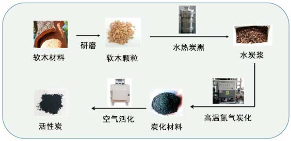 采用簡便的水熱碳化方法結合空氣活化,以軟木為原料,制備功能性多孔富氧活性炭,不使用任何化學試劑。首先將軟木材料用水進行水熱處理,以生產水凝膠。隨后,在氮氣下在高溫下進行后碳化,以提高石墨化程度和多孔結構(圖1)。通過元素分析測定,獲得的木質活性炭由89.8wt%的碳和6.1wt%的氧組成。為了產生增加的孔隙率并增加活性炭上的含氧官能團,所制備的碳在靜態空氣中在350℃至450℃的溫度下進一步熱氧化。在空氣活化過程中,相對揮發性的碳部分分解,在氧氣存在下形成氣態物質如CO,CO 2和碳氫化合物,用作膨脹介質,通過碳與氧反應產生氣孔。此外,還可以通過除去碳來形成許多孔。因此,使用無化學熱氧化同時形成功能性含氧物質。元素分析結果證實,活性炭顯示氧含量增加,功能氧基團隨著活化溫度的升高而增加。