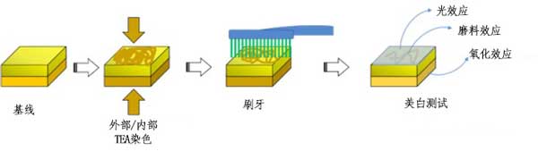 圖1:作為其美白技術的函數,樣品的染色方案和所測試的不同美白牙膏的可能的美白效果。