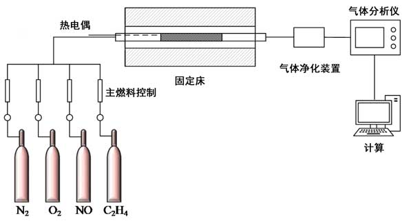 催化測試的實驗裝置如圖1所示。將每種活性炭樣品放入固定床石英管反應器中,該反應器由溫控爐外部加熱。氣體流速通過質量流控制器控制,與模擬氣體混合物調節至500ppm NO,500ppm的乙烯,3.0%(體積)Ò 2和N 2為平衡流量,總流量為1500 ml/min。在每個測試的催化劑溫度達到穩定的設定點之后,將氣體混合物注入反應器中。進出氣中NO和NO X的濃度用煙氣分析儀分析。下標的進和出分別指示入口和出口的濃度。