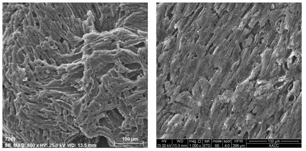 圖4:活性炭和新鮮的活性炭載鐵錳氧化物的SEM圖像。