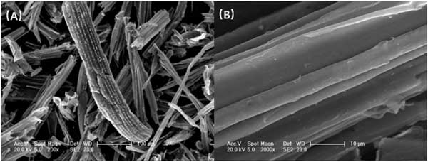 原材料用去離子水沖洗并干燥。然后在破碎機中破碎。重復破碎后,將破碎的原材料堆通過50和100目篩。將篩過的原材料粉末在氮氣氣氛下在不同溫度(300.0 °C至1000.0 °C)下煅燒。加熱速度為5.0 ℃ min -1,目標溫度維持 180min。溫度上升后;然后將樣品自然冷卻至室溫。將烘干的活性炭浸入10%的鹽酸中12 h,用水洗滌3次,并在100.0 °C下干燥6 h制成。研發的活性炭與商業活性炭相比,具有更高的表面積和孔體積。圖1 顯示了活性炭的掃描電子顯微照片。由于高溫煅燒,活性炭具有不規則的棒狀結構,在其表面上具有皺紋,這提供了較大的表面積并增加了活性炭表面的吸附位置。