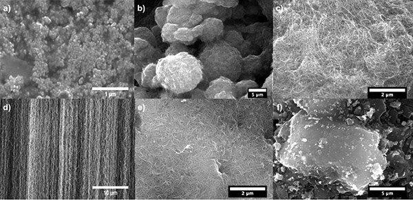 圖2顯示了使用SEM顯示了不同吸附劑的形態。碳納米角具有如圖2a的SEM圖像所示的聚集結構。碳納米角的TEM圖像(圖3c)顯示只有很少的尖端從球形聚集體結構中突出,表明芽狀碳納米角結構。高分辨率TEM圖像確認了碳納米角的單壁錐形結構(圖3c的)。活性炭呈顆粒狀且SEM圖像(圖2f)揭示了沒有特定結構/順序的聚集結構,這是活性炭材料的特征。