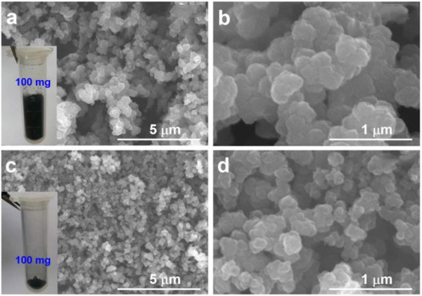 圖2中的插圖是兩種活性炭的數碼照片。當將相同量的兩種活性炭(100 mg)放入相同體積的離心管(5 mL)中時,活性炭-1粉末占據的體積更大,這表明他的密度較低。通過掃描電子顯微鏡研究了他們的形態。如圖2所示可以看出,與原始材料相比,兩種活性炭的外觀變化不大。但是,它們的粒徑不同。顯然,活性炭-1的顆粒大于活性炭-2的顆粒。這些顆粒聚集在一起并形成多孔形態。活性炭-1具有更大的孔徑,表明較疏松的多孔結構。