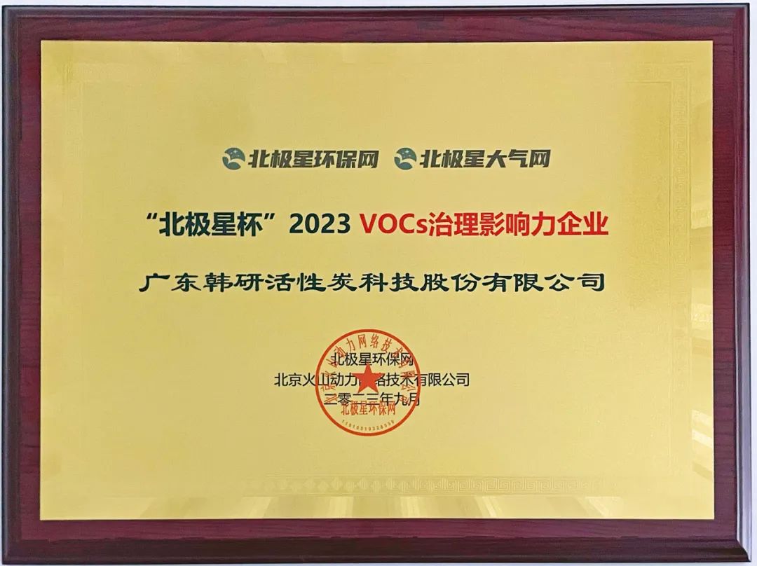 喜報|韓研股份榮獲 “北極星杯” 2023 VOCs 治理影響力企業稱號
