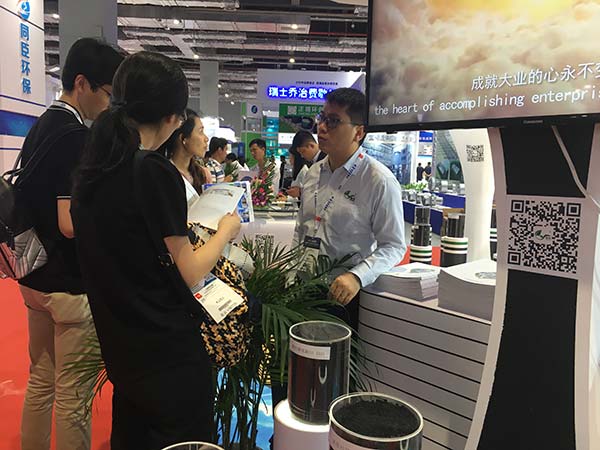 在為期三天的展會中,來自各個國家、各個行業的專家在韓研活性炭的展館交流探討活性炭相關技術問題。